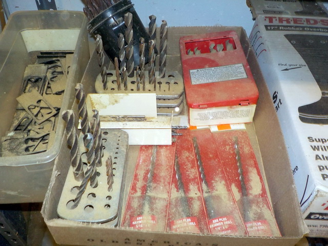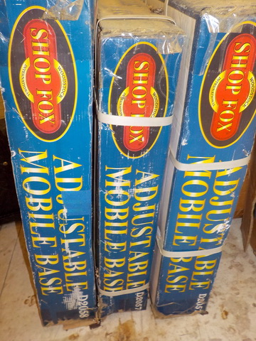 adjustable mobile bases (NIB), assorted wire & hardware, drill bits, pipe vise,